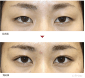 皮膚を丁寧に縫い合わせます(両目で5〜7針程度)。手術時間は部分切開で30分前後、全切開で1時間程度です。