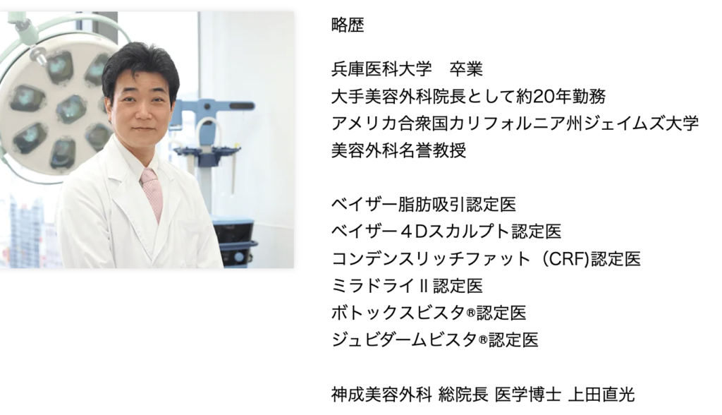 | 神成美容外科 | 上田 直光 医師 | 66,000円〜 | 要確認 | 可(要確認) |