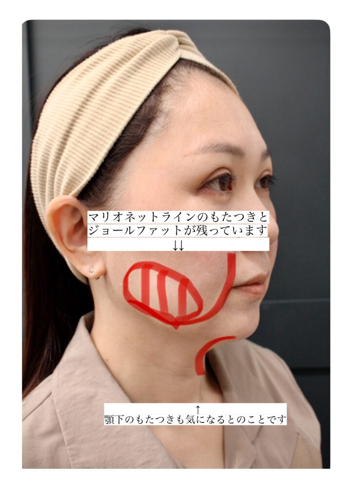 具体的にはマリオネットラインと顎下のもたつきが気になる、とおっしゃておられます。