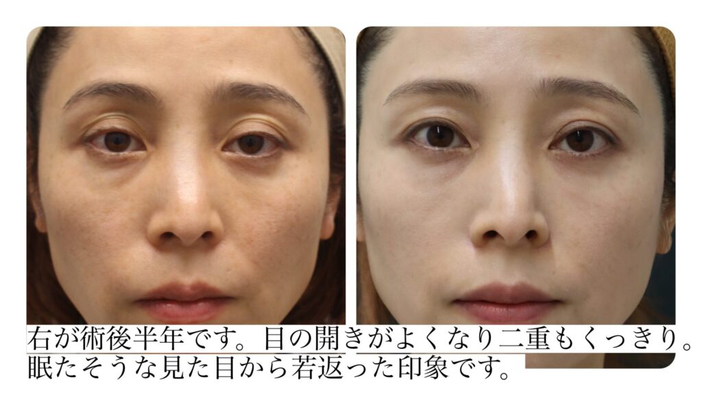 そして、手術から半年後の写真です。顔全体の印象としても眠たそうな見た目から元気な印象というか若返った印象になりました。