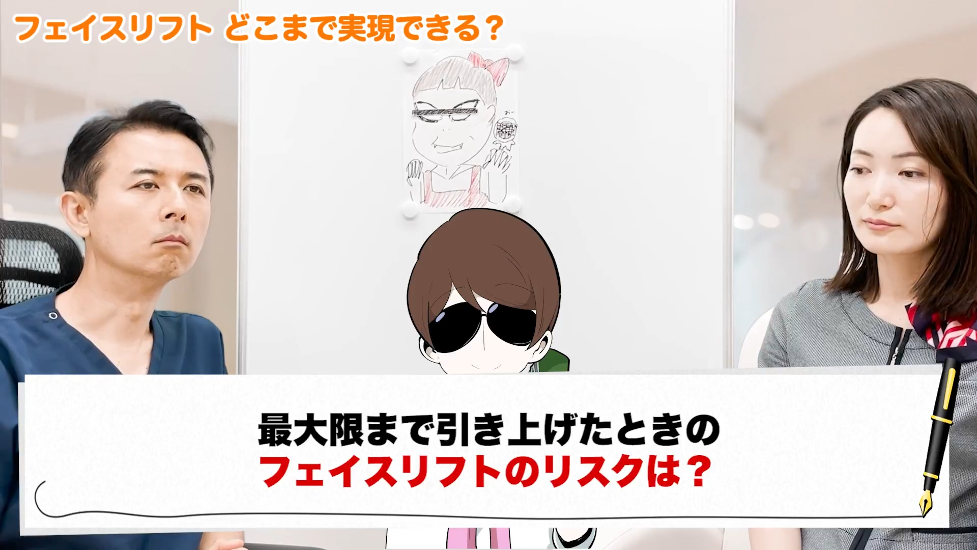 てんP:はい。先生それをじゃあ引き上げますっていって、いっぱいいっぱいまで引き上げた時のフェイスリフトのリスクって何でしょう。
