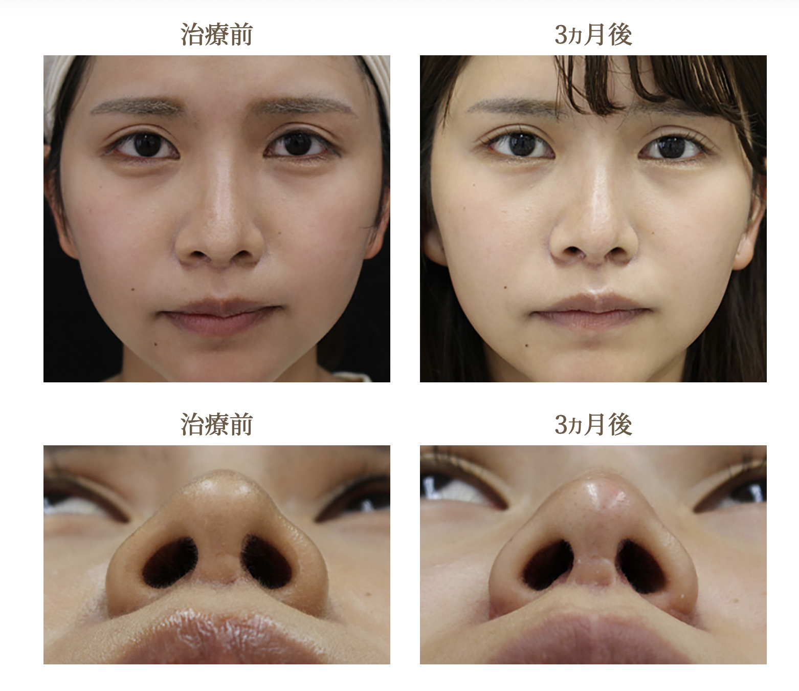 治療前は小鼻がやや外側に張り、鼻の印象が強い顔立ちに見えます。小鼻縮小手術を受けたことによって、小鼻の張りがなくなり、全体的に鼻が小さくなりました。