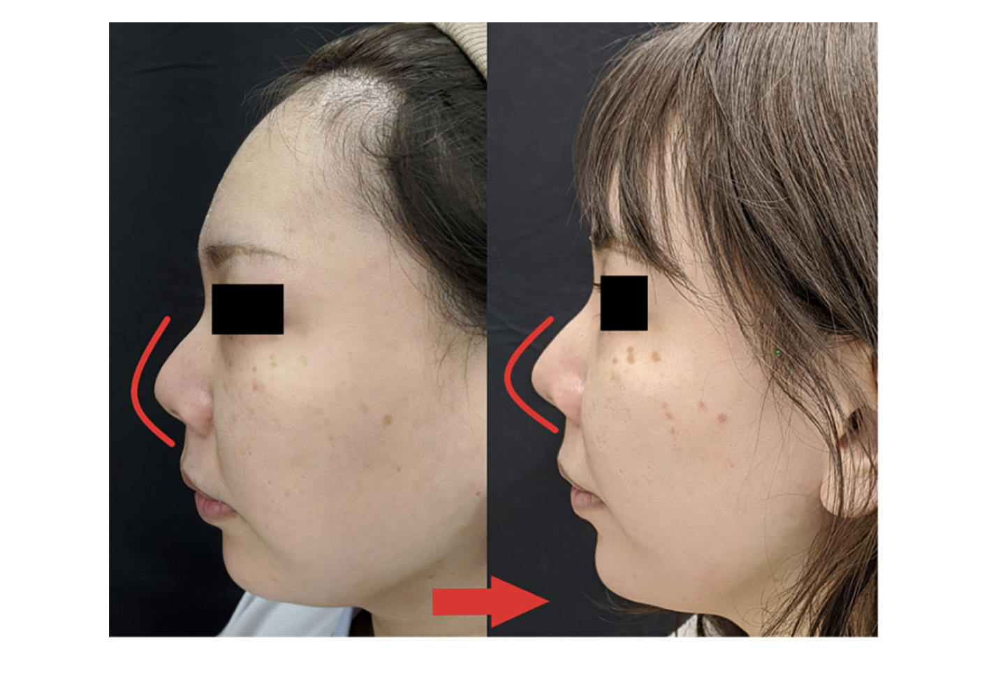 鼻尖形成耳介軟骨挿入術を受けたことで、鼻先が尖ってやや下向きになり、横顔がきれいな印象に仕上がりました。